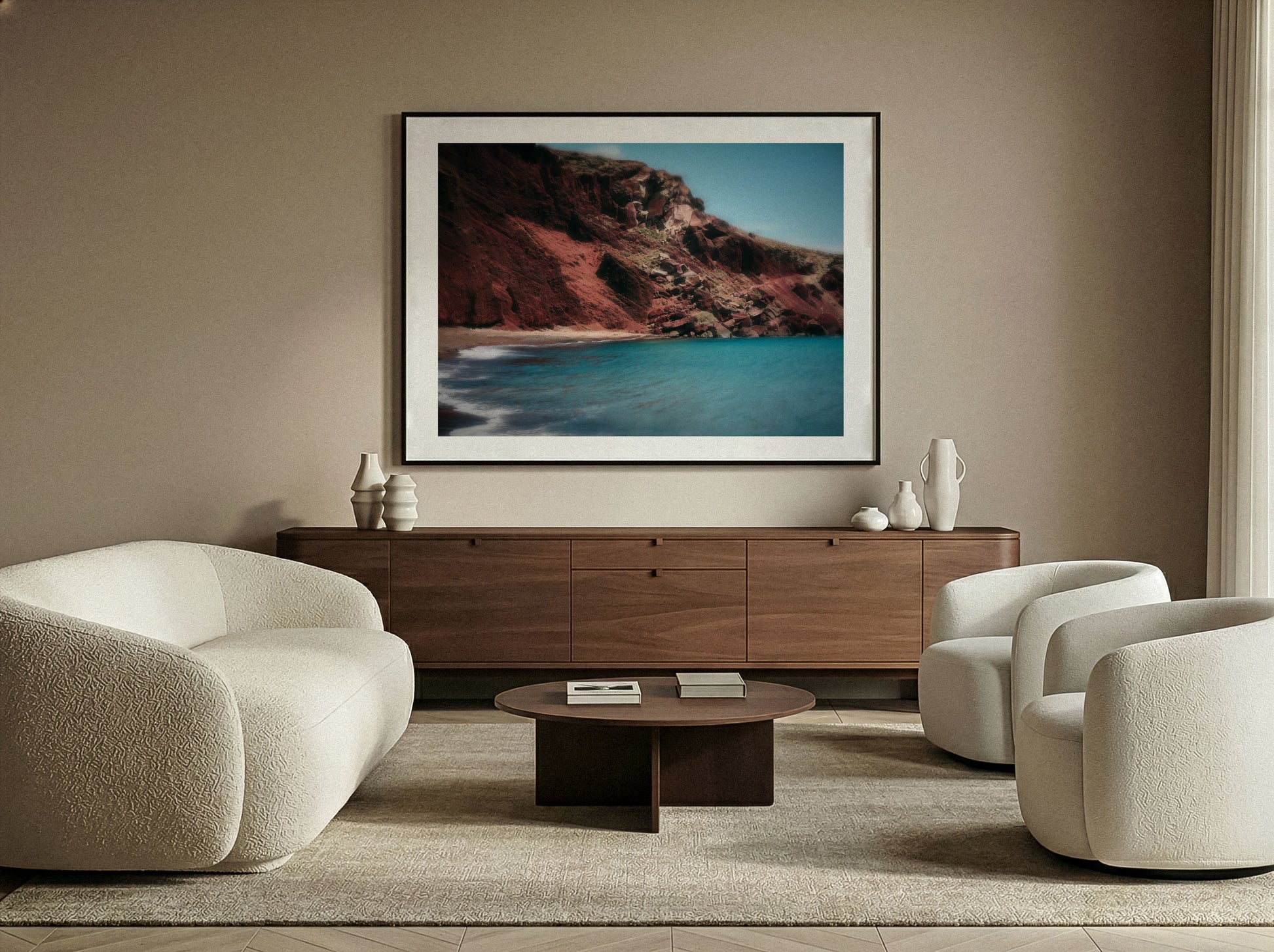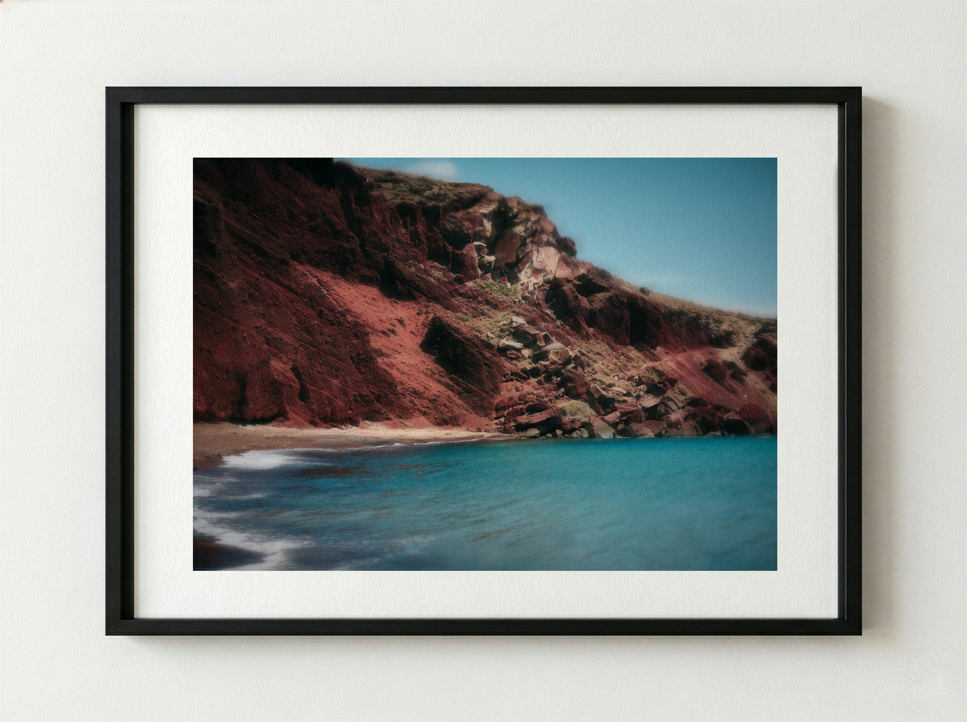 An arresting landscape study from the Elsewhere series. The saturated cliffs and impossible blue sea create a natural tension between erosion and permanence.