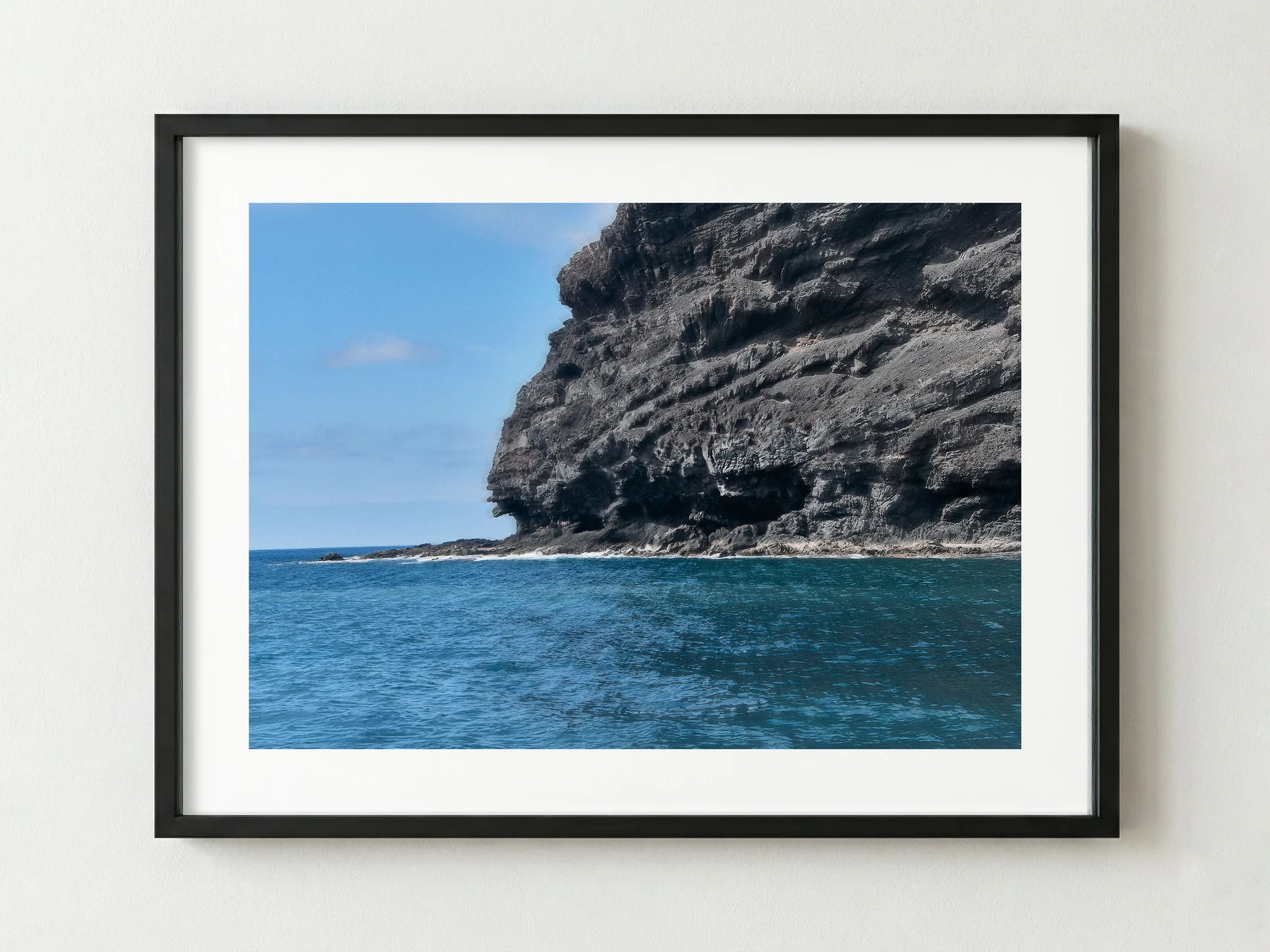 A study in contrast—sheer rock rising above the ocean’s shifting surface. The volcanic cliff appears unyielding, yet softened by salt air and time. Light moves across textures and strata, capturing a sense of stillness within the relentless energy of the sea.